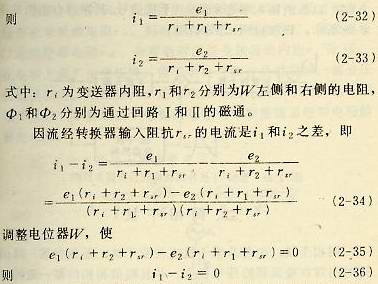 如圖2-27所示,這種方法是在一個電極上引出兩根導(dǎo)線,分別接在一個電位器W的兩端,另一個電極的引出線和電位器W的中端分別接到轉(zhuǎn)換器的輸入端,即rsr的兩端。這樣就形成了兩個閉合回路Ⅰ和Ⅱ,在磁場中磁通相互交鏈。在閉合回路Ⅰ中感應(yīng)產(chǎn)生的電動勢e1和閉合回路Ⅱ中感應(yīng)產(chǎn)生的電動勢e2各自形成電流i1和i2. i1和i2分別經(jīng)過電位器中端加到轉(zhuǎn)換器的輸入電阻rsr上。因這兩個電流的方向是相反,當(dāng)被測液體的流速為零時,調(diào)整電位器w中心觸點的位置,可以找到一個平衡點,是兩個閉合回路中的電流i1和i2大小相等,這樣流經(jīng)rsr上的電流i1和i2就可以相互抵消。其關(guān)系可用下列式子來表示。